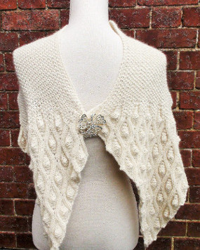 An encompassing wrap-around 'candle-light' statement shawl. Choose two flares (candlelight design on both ends of the wrap) for volume and warmth or choose one flare (candlelight design on one end) for a thick and voluptuous shoulder wrap. Simply tie with a shawl-pin or wear loose - swinging.