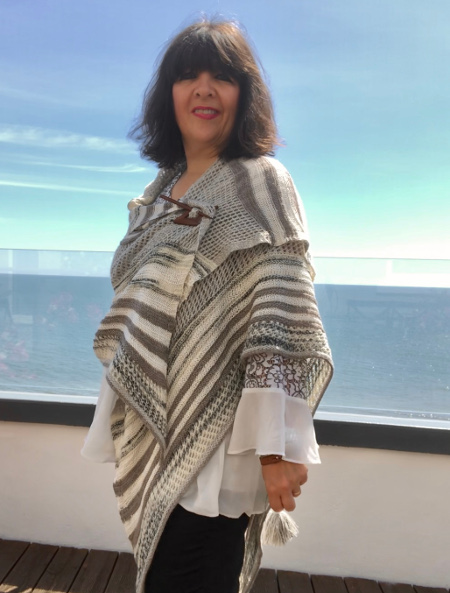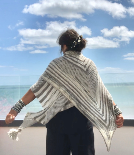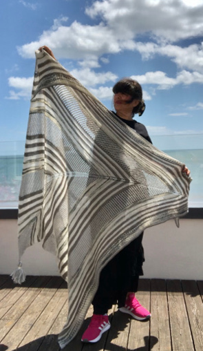 QUARTER is a huge practical and statement shawl; to wrap, swoosh and swing around you. This design uses techniques that are familiar and safe, nothing too demanding.